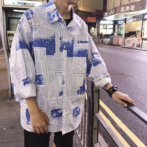 Kemeja Patern Surat Khabar Men S Fashion Clothes Tops On Carousell