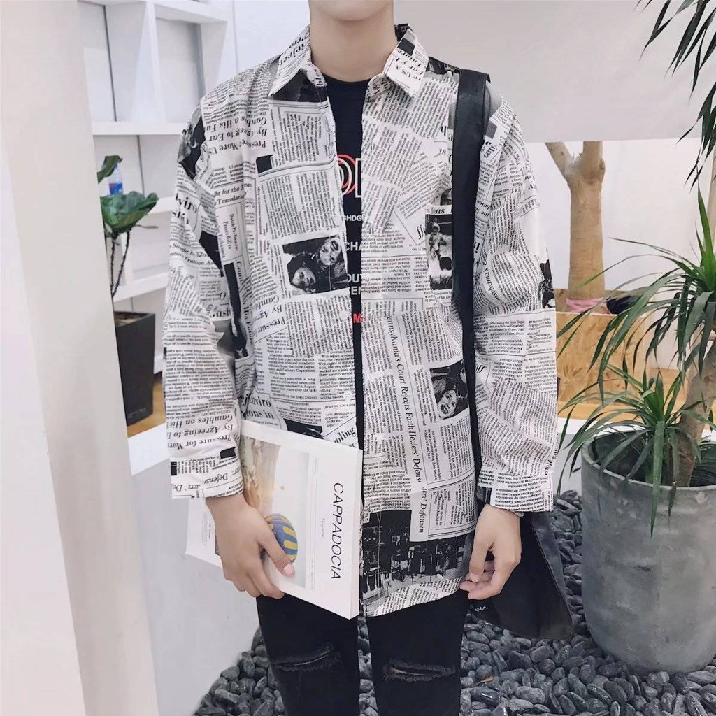Surat Khabar Lelaki Lelaki Korea Pelajar Panjang Lengan Grafiti Baju Harajuku Gaya Jepun Ins Baju Kartun Komik Shopee Malaysia